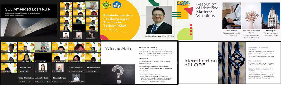 On this occasion, he presented the development of the SEC Amended Loan Rule, which was very interesting and provided knowledge for the Accounting competition team of the Faculty of Economics, Parahyangan Catholic University. The Amended Loan Rule (ALR) is a rule issued by the Security Exchange Commission (SEC) with respect to auditor independence in connection with certain loans or debtor-creditor relationships to ensure auditor objectivity and impartiality. The ALR became effective on October 3, 2019 and replaces the previous rules. The ALR imposes a prohibition on certain debtor-creditor relationships between companies or covered persons and audit clients, employees of audit clients, or entities that are not yet affiliates but are beneficial owners of SEC audit clients with the ability to exercise significant influence over the audited entity (a Loan Only Restricted Entity, or LORE). The scope is within SEC audit clients and all their affiliates, with the exception of fund audit clients, where “sister funds” are excluded. Also includes beneficial owners of entities that may not be SEC audit clients themselves but are affiliates of SEC audit clients.